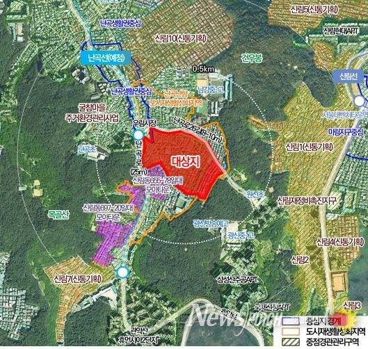 서울시는 신림8구역을 난곡 생활권의 중심 주거지로 육성하기 위해 자연환경과 생활권 기능, 교통 여건을 종합 고려한 공간계획을 수립했다.