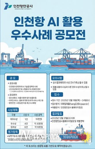 뉴스펀치 김길룡 기자 | 인천항만공사(사장 이경규, 이하 인천항만공사)는'2025년 인천항 혁신을 위한 AI 활용 우수사례 공모전'을 개최한다고 밝혔다.