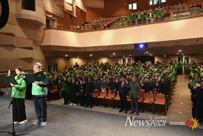 뉴스펀치 김길룡 기자 | 예산군 새마을회는 지난 23일 예산군문예회관에서 새마을가족과 내외빈 500여명이 참석한 가운데 ‘2025 예산군 새마을운동 종합평가대회’를 개최했다.