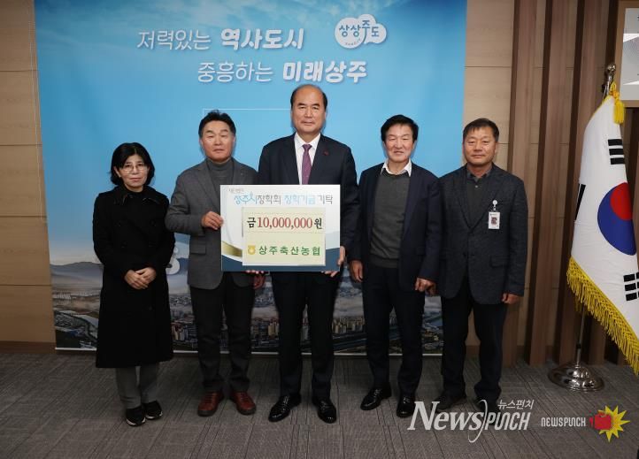 뉴스펀치 김길룡 기자 | 상주축산농협에서는 24일 오후 상주시청을 방문하여 상주시를 이끌어갈 인재 육성을 위해 상주시장학회에 장학금 1,000만 원을 기탁했다.