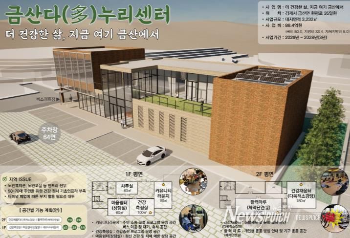 시는 이번 사업을 통해 주민의 건강과 정서 복지를 통합적으로 지원하는 기초 인프라를 구축하기 위해 금산면 원평로 35 일원(옛 원평공용버스터미널)에 내년부터 오는 2028년까지 3년간 총 88.4억원을 투입해 지상 2층 규모의 금산 다(多)누리센터를 건립할 예정이다.