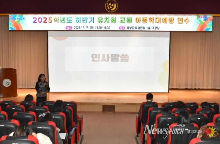 뉴스펀치 김길룡 기자 | 부산광역시북부교육지원청은 지난 18일 교육지원청 대강당에서 관내 공‧사립유치원 관리자 및 교사 80여 명을 대상으로 아동학대 예방교육을 실시했다고 밝혔다.