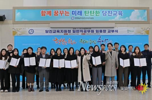 뉴스펀치 김길룡 기자 | 충청남도당진교육지원청은 24일, 2026년 1월 1일 자로 당진교육지원청 소속으로 전입한 직원과 교육청 전입 직원 26명을 대상으로 일반직공무원 임용장 교부식을 개최했다고 밝혔다.