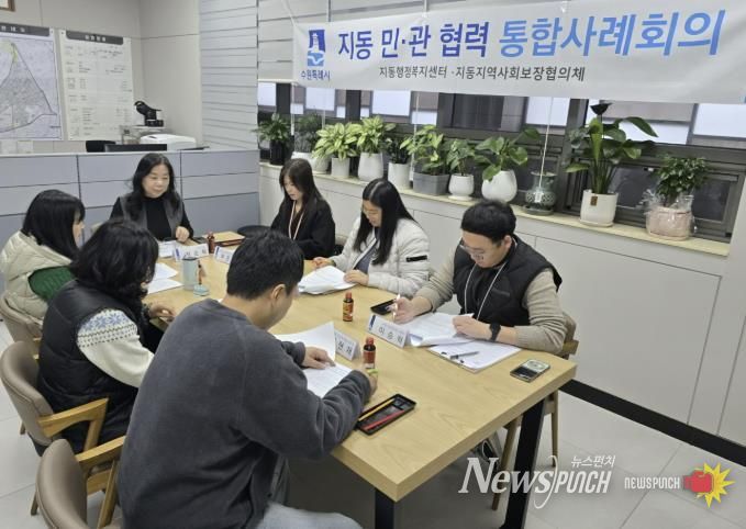 뉴스펀치 김길룡 기자 | 수원시 팔달구 지동은 지난 24일 지동 행정복지센터에서 정신건강 문제와 경제적 어려움 등 복합적인 위기 상황에 놓인 가구의 지원 방안을 논의하기 위해 민·관 통합사례회의를 개최했다.