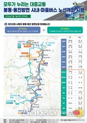 뉴스펀치 정홍균 기자 | 완주군이 내년도 1월 1일부터 완주–전주 시내버스 지간선제 노선개편 3단계(봉동용진방면)를 전면 시행한다.