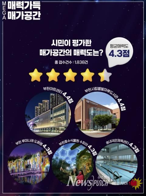 뉴스펀치 김길룡 기자 | 부천시는 시민이 직접 참여한 ‘MEGA(매가) 공간’ 매력도 조사 결과를 발표했다. 이번 공모는 공간에 대한 시민의 체감도와 이용 경험을 파악하고, 이를 바탕으로 향후 공간 운영과 정책 방향을 설정하기 위해 실시됐다.