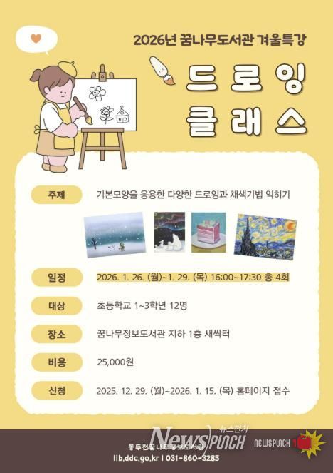 뉴스펀치 김길룡 기자 | 동두천시 도서문화사업소 꿈나무정보도서관은 초등학생을 대상으로 한 2026년 겨울방학 특강 프로그램을 운영한다고 밝혔다.