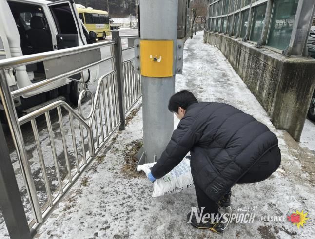 뉴스펀치 김길룡 기자 | 동두천시 생연1동 행정복지센터는 지난 24일, 겨울철 강설과 결빙으로 인한 주민 낙상 사고를 예방하기 위해 관내 상습 결빙 구간에 제설제를 비치했다고 밝혔다.
