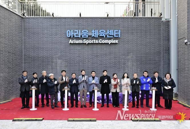 뉴스펀치 김길룡 기자 | 포천시는 지난 12월 25일 시민 생활체육 인프라 확충을 위해 조성된 아리움 체육센터 준공식을 개최하고 시설을 공개했다.
