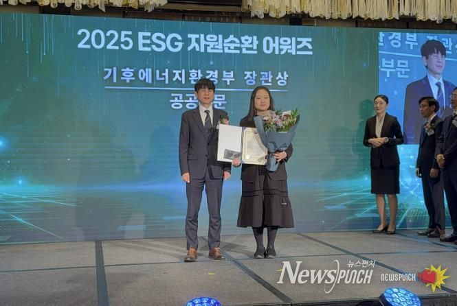뉴스펀치 김길룡 기자 | 연천군시설관리공단은 지난 24일 열린 ‘2025 ESG 자원순환 어워즈’에서 공공기관 부문 우수기관으로 선정되어 기후에너지환경부 장관상을 수상했다고 밝혔다.