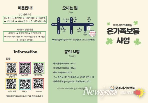 뉴스펀치 김길룡 기자 | 여주시가족센터는 가족의 다양성을 존중하고 취약·위기가정의 안정적인 삶을 지원하기 위해 '온가족보듬사업'을 적극적으로 운영했다.
