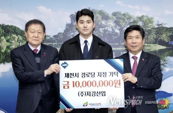 이날 기탁식에는 ㈜지강산업 윤희석 실장을 비롯해 임단 매니저, 박현지 매니저가 참석해 지역 어르신 복지 증진을 위한 나눔의 뜻을 전했다. 이번에 전달된 기탁금은 제천시 관내 경로당 운영 및 환경 개선을 위한 지원에 사용될 예정이다.