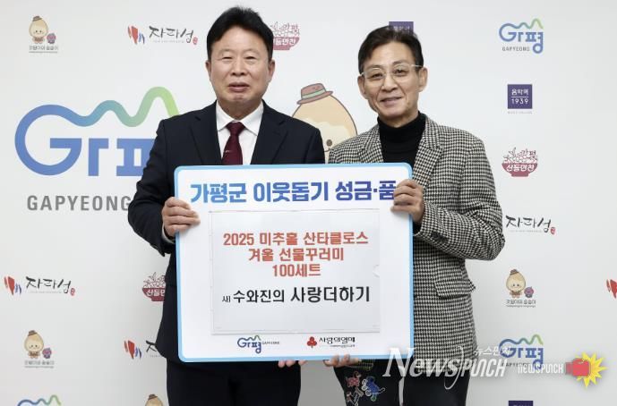 서태원 가평군수는 “매년 따뜻한 나눔을 실천하며 지역사회에 귀감이 되고 있는 사단법인 수와진의 사랑더하기에 깊이 감사드린다”며 “기탁해 주신 산타 꾸러미는 꼭 필요한 분들께 소중히 전달하겠다”고 밝혔다.