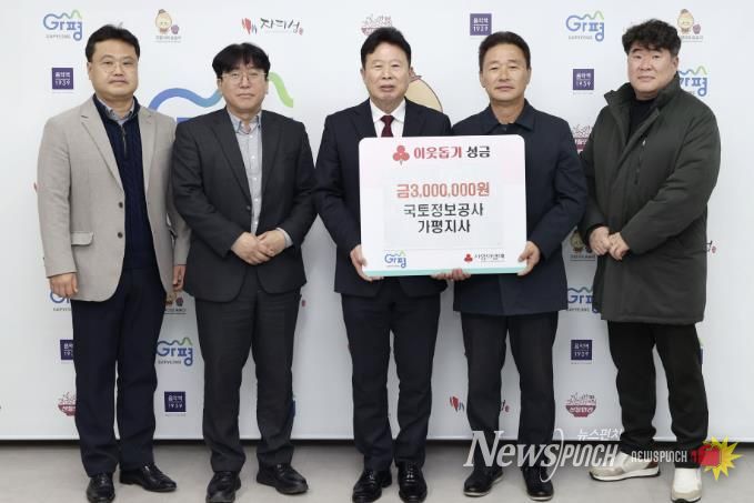 뉴스펀치 김길룡 기자 | 한국국토정보공사 가평지사는 지난 24일 지역 내 어려운 이웃을 돕기 위한 성금 300만원을 가평군에 기탁했다.