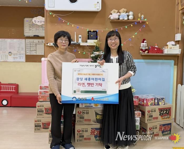 뉴스펀치 김길룡 기자 | 양평군 강상면은 지난 24일 강상면 병산리에 위치한 세종어린이집에서 라면과 즉석식품 등 이웃 돕기 후원 물품을 기탁했다고 밝혔다.