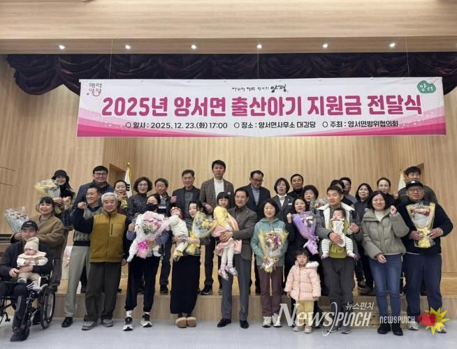 뉴스펀치 김길룡 기자 | 양서면 방위협의회는 지난 23일 저출산 극복과 출산 장려 분위기 조성을 위해 ‘2025년 양서면 출산아기 지원금 전달식’을 개최했다.