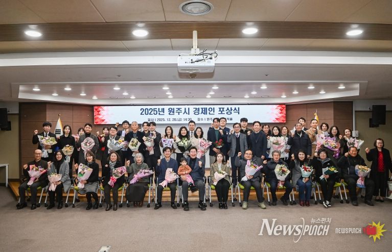 뉴스펀치 김길룡 기자 | 원주시는 26일 오후 2시 30분, 시청 지하1층 다목적홀에서 ‘2025년 원주시 경제인 포상식’을 개최했다.