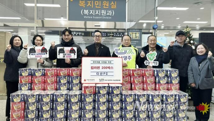 뉴스펀치 김길룡 기자 | 남양주시는 26일 다산행정복지센터에서 지역 체육단체인 다산 FC와 컵라면 200개 후원 물품 전달식을 가졌다고 밝혔다.