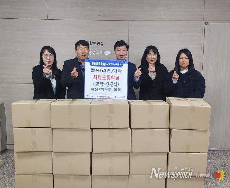 뉴스펀치 김길룡 기자 | 연말을 맞아 평택 지제초등학교 학부모회가 지난 24일, 따뜻한 마음 담은 라면 20박스를 평택시 세교동 행정복지센터에 기부했다.