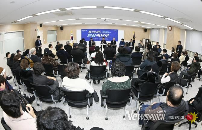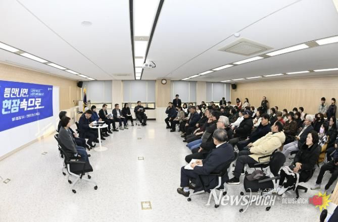 뉴스펀치 김길룡 기자 | 부천시는 24일 오정구청 대회의실에서 제7차 ‘틈만나면, 현장속으로’를 열고, 경인고속도로 인근 소규모주택정비사업 구역의 방음벽 설치 민원 해결을 위한 주민 의견을 청취했다.