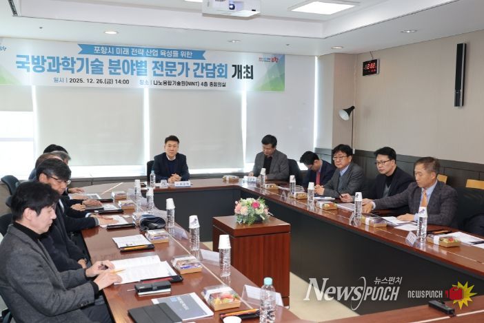 뉴스펀치 김길룡 기자 | 포항시는 26일 포스텍 나노융합기술원에서 미래 신성장 동력 창출을 위한 ‘국방과학기술 분야별 전문가 간담회’를 개최하고, 지역 산업과 연계한 국방과학기술 신산업 육성 전략을 논의했다.