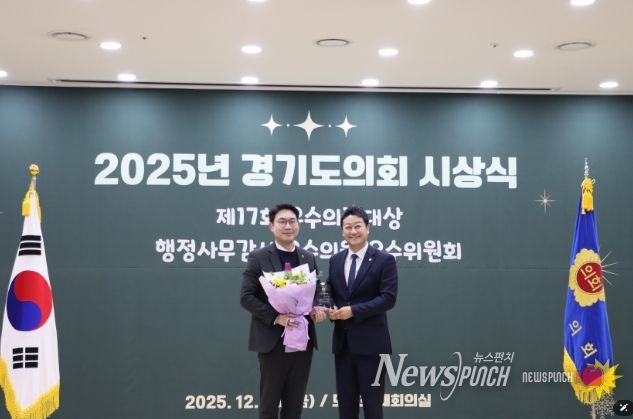 뉴스펀치 김길룡 기자 | 경기도의회 교육행정위원회 문승호 의원(더불어민주당, 성남1)이 12월 26일 경기 교육과 지역 발전의 공로를 인정받아 제17회 대한민국시도의회의장협의회에서 수여하는 우수의정대상을 수상했다.