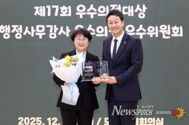 뉴스펀치 김길룡 기자 | 경기도의회 경제노동위원회 고은정 위원장(더불어민주당, 고양10)은 26일 경기도의회에서 열린 ‘2025년 경기도의회 시상식’에서 대한민국시도의회의장협의회가 주관하는 ‘제17회 우수의정대상’을 수상했다.