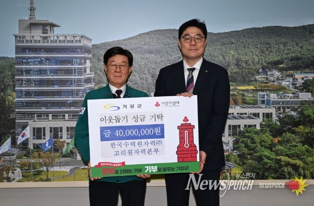 뉴스펀치 김길룡 기자 | 부산 기장군은 지난 24일 한국수력원자력(주) 고리원자력본부(본부장 이상욱)가 관내 저소득 취약계층을 위해 이웃돕기 성금 4,000만원을 기탁했다고 26일 밝혔다.
