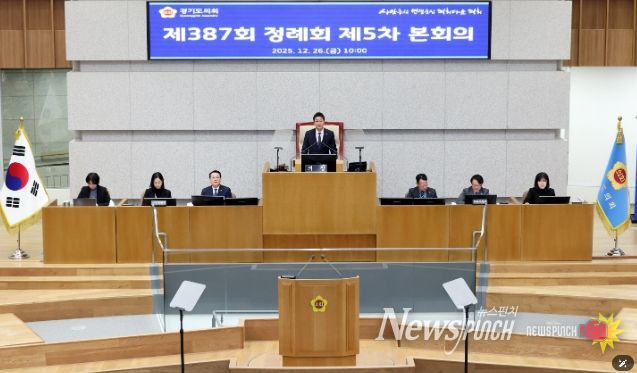 경기도의회는 이날 제387회 정례회 5차 본회의를 열고 2026년도 새해 예산안을 의결하며 회기 일정을 끝마쳤다.