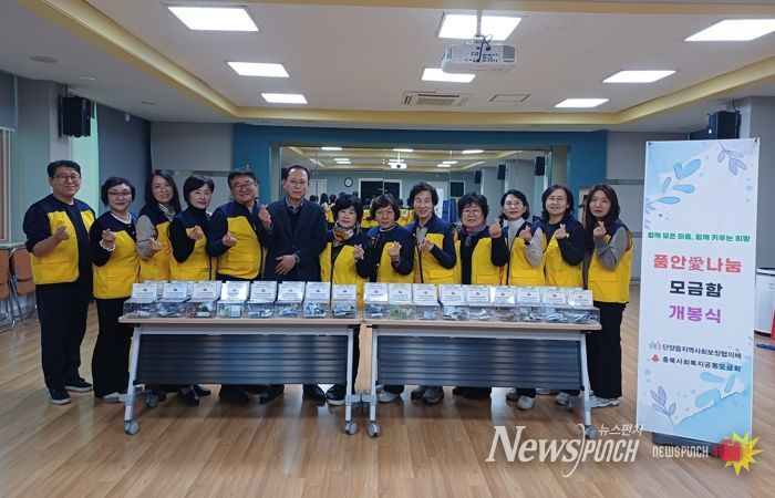 뉴스펀치 김길룡 기자 | 단양읍지역사회보장협의체는 올해 초 지역 곳곳에 설치·운영해 온 ‘품안愛나눔 모금함’을 수거해 단양읍행정복지센터에서 개봉식을 가졌다고 26일 밝혔다.