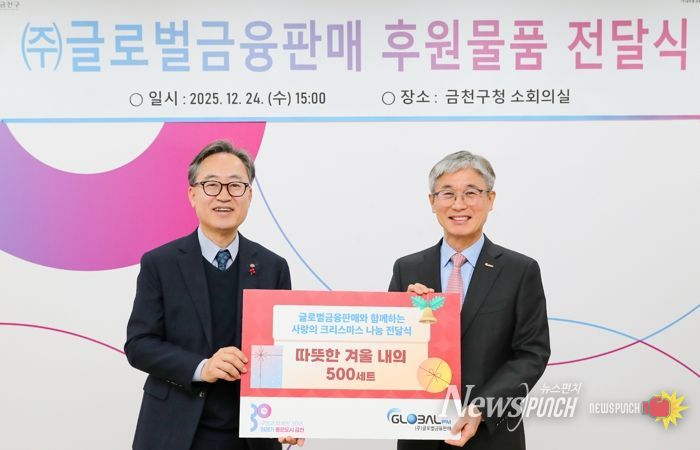 지난 24일 금천구청 소회의실에서 ㈜글로벌금융판매의 후원물품 전달식이 진행됐다. 고물가 등으로 겨울내의 구입이 부담스러운 취약계층을 돕기 위해 1,500만 원 상당 겨울 내의를 후원했다. 겨울내의는 지역 내 취약계층 약 500세대에 전달될 예정이다.