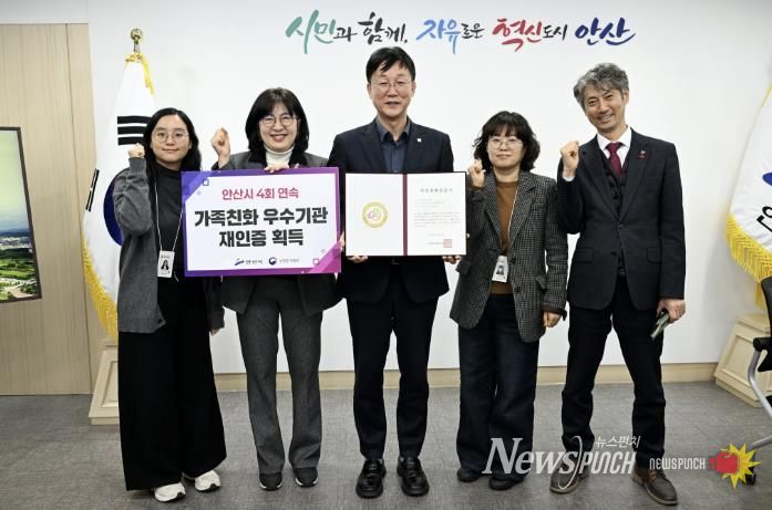 뉴스펀치 김길룡 기자 | 안산시는 올해 성평등가족부가 선정하는 ‘가족친화 우수기관 재인증’을 4회 연속 획득했다고 29일 밝혔다.