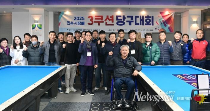 뉴스펀치 김길룡 기자 | ‘2025년 진주시장배 3쿠션 당구대회’가 28일 진주시 관내 PBA 당구클럽 등 6곳에서 300여 명의 선수와 관계자들이 참가한 가운데 성황리에 개최됐다.