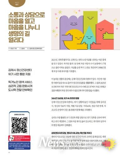 뉴스펀치 정홍균 기자 | 김제시정신건강복지센터(센터장 서정수)는 시에서 추진 중인‘지역맞춤형 자살예방사업’이 지방자치단체 정책 전문지인 월간 「지방정부」 2025년 12월호에 지자체 우수사례로 소개됐다고 밝혔다.