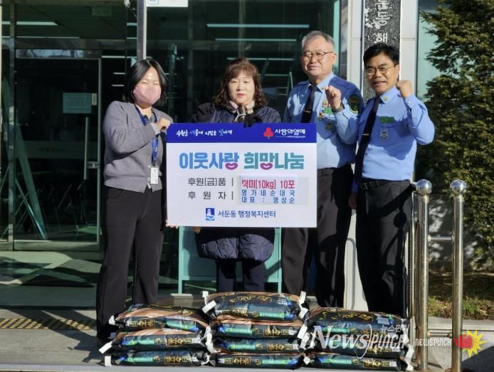 양오선 서둔동장은 “지역사회를 위한 이웃 사랑을 몸소 실천하는 명가네순대국 명성순 대표님께 감사드린다”며 “전달해 주신 소중한 후원물품은 어려운 이웃에게 잘 전달해 드리겠다”라고 말했다.