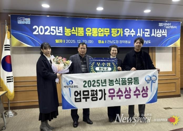 뉴스펀치 김길룡 기자 | 완도군이 전라남도 주관 '2025년도 농식품 유통 업무 평가'에서 ‘우수상’을 수상했다.
