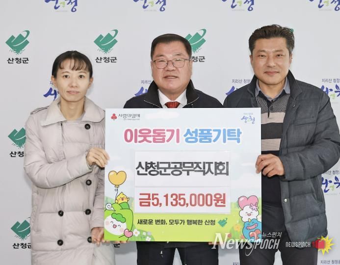 뉴스펀치 김길룡 기자 | 산청군은 지난 26일 산청군공무직지회가 ‘산엔청 희망나눔 사업’후원을 위해 성금 513만 5000원을 기탁했다고 29일 밝혔다.