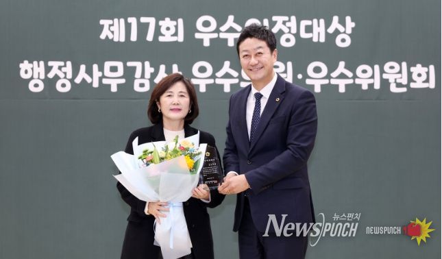 뉴스펀치 김길룡 기자 | 경기도의회 교육기획위원회 김영희 의원(더불어민주당, 오산1)이 지난 26일 경기도의회 대회의실에서 열린 제17회 우수의정대상 시상식에서 우수의정대상을 수상했다.