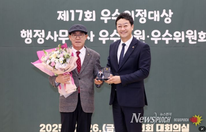 뉴스펀치 김길룡 기자 | 경기도의회 도시환경위원회 박명수 의원(국민의힘, 안성2)이 26일 경기도의회가 선정한 ‘제17회 우수의정대상 행정사무감사 우수의원’을 수상했다.