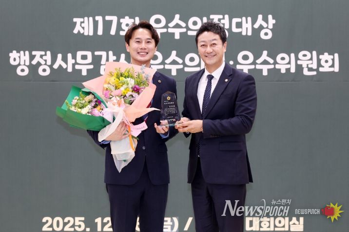 뉴스펀치 김길룡 기자 | 경기도의회 문화체육관광위원회 황대호 위원장(더불어민주당, 수원3)이 지난 26일 경기도의회 대회의실에서 진행된 대한민국시도의회의장협의회 주관 ‘제17회 우수의정대상’ 시상식에서 우수의정대상을 수상했다.