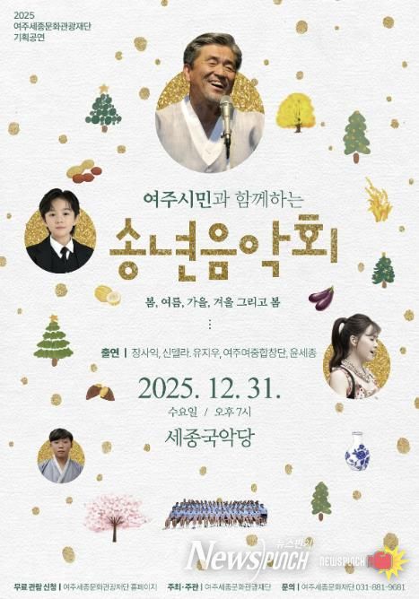 뉴스펀치 김길룡 기자 | 여주세종문화관광재단이 오는 12월 31일, 세종국악당에서 ‘2025 여주시민과 함께하는 송년음악회’를 개최다.