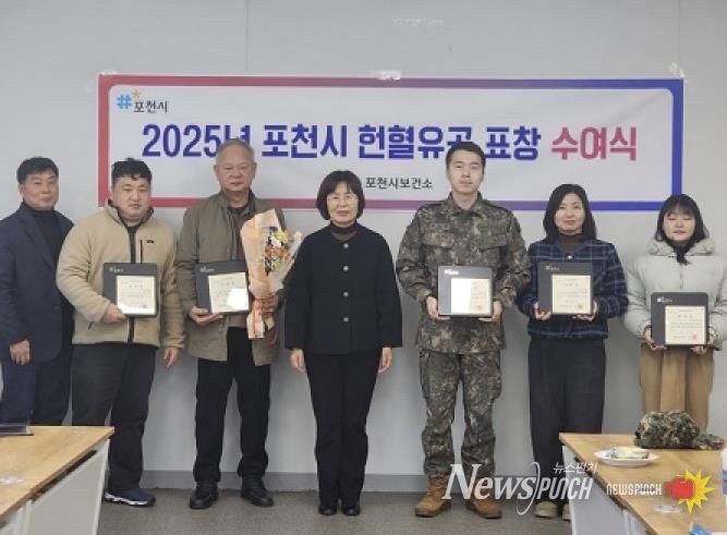 뉴스펀치 김길룡 기자 | 포천시는 26일 보건소 2층 회의실에서 헌혈 문화 확산과 사랑 나눔 실천에 기여한 개인 및 단체를 대상으로 헌혈 유공 표창 수여식을 개최했다.