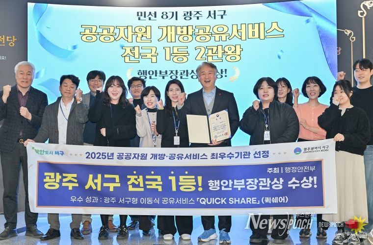 뉴스펀치 김길룡 기자 | 광주광역시 서구의 생활밀착형 공유정책 ‘천원 피크닉’이 전국 무대에서 주목받았다. 서구는 행정안전부가 주관한 ‘2025년 공공자원 개방·공유서비스 실적평가’에서 전국 최우수 기관으로 선정돼 행정안전부 장관상을 수상했다고 29일 밝혔다.