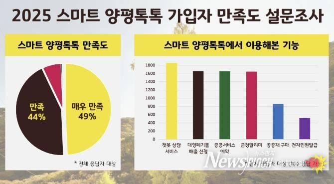 뉴스펀치 김길룡 기자 | 양평군은 지난 8일부터 17일까지 10일간 ‘스마트 양평톡톡’ 이용자를 대상으로 만족도 설문조사를 실시해 4,607명의 의견을 수렴한 결과, 응답자의 93% 이상이 서비스에 만족하는 것으로 나타났다고 밝혔다.