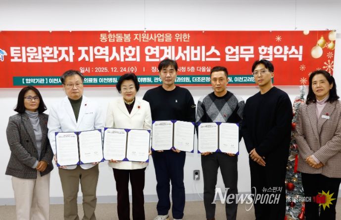 뉴스펀치 김길룡 기자 | 이천시는 12월 24일 시청 다올실에서 퇴원환자의 안정적인 지역사회 복귀와 지속적인 돌봄지원을 위한 ‘퇴원환자 지역사회 연계 서비스 업무협약’을 체결했다.