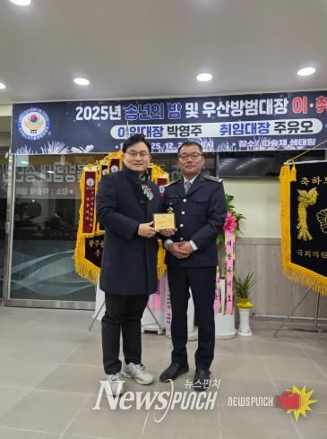 이번 감사패는 공 의원이 그동안 우산동을 비롯한 지역 곳곳에서 주민 안전을 최우선 과제로 삼고, 자율방범대 활동 지원과 안전 인프라 확충에 힘 써온 점을 높이 평가해 수여됐다.