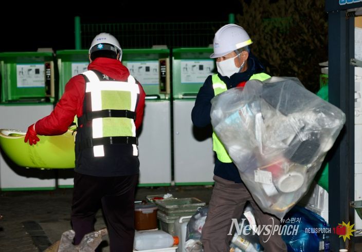 뉴스펀치 김길룡 기자 | 김완근 제주시장은 12월 29일 새벽 한림읍 일원에서 환경미화원들과 함께 생활폐기물을 수거했다.
