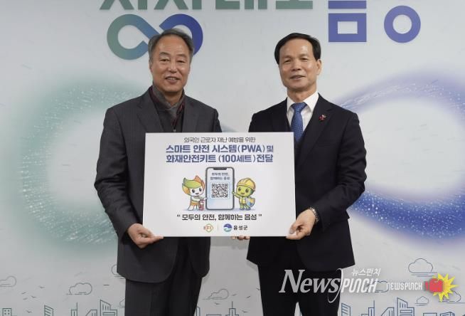 뉴스펀치 김길룡 기자 | 한국소방산업기술원이 29일 음성군을 방문해 음성군 외국인주민을 위해 PWA 및 화재대응키트 100세트를 기탁했다.