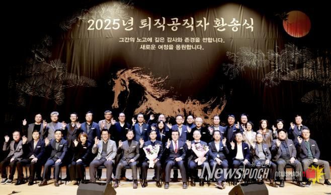 환송식은 직원들의 축하공연과 퇴직자 헌정 영상 상영, 공적·공로패 수여 등으로 구성됐으며, 공직의 여정을 함께해 온 동료와 가족이 한자리에 모여 감사와 존경의 마음을 나누는 따뜻하고 품격 있는 자리로 진행됐다.