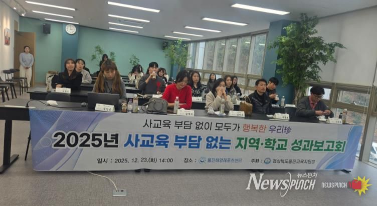 뉴스펀치 김길룡 기자 | 울진교육지원청은 2025년 12월 23일 14시, 울진해양레포츠센터에서 '2025 사교육 부담 없는 지역·학교 사업 운영 성과보고회'를 개최했다.